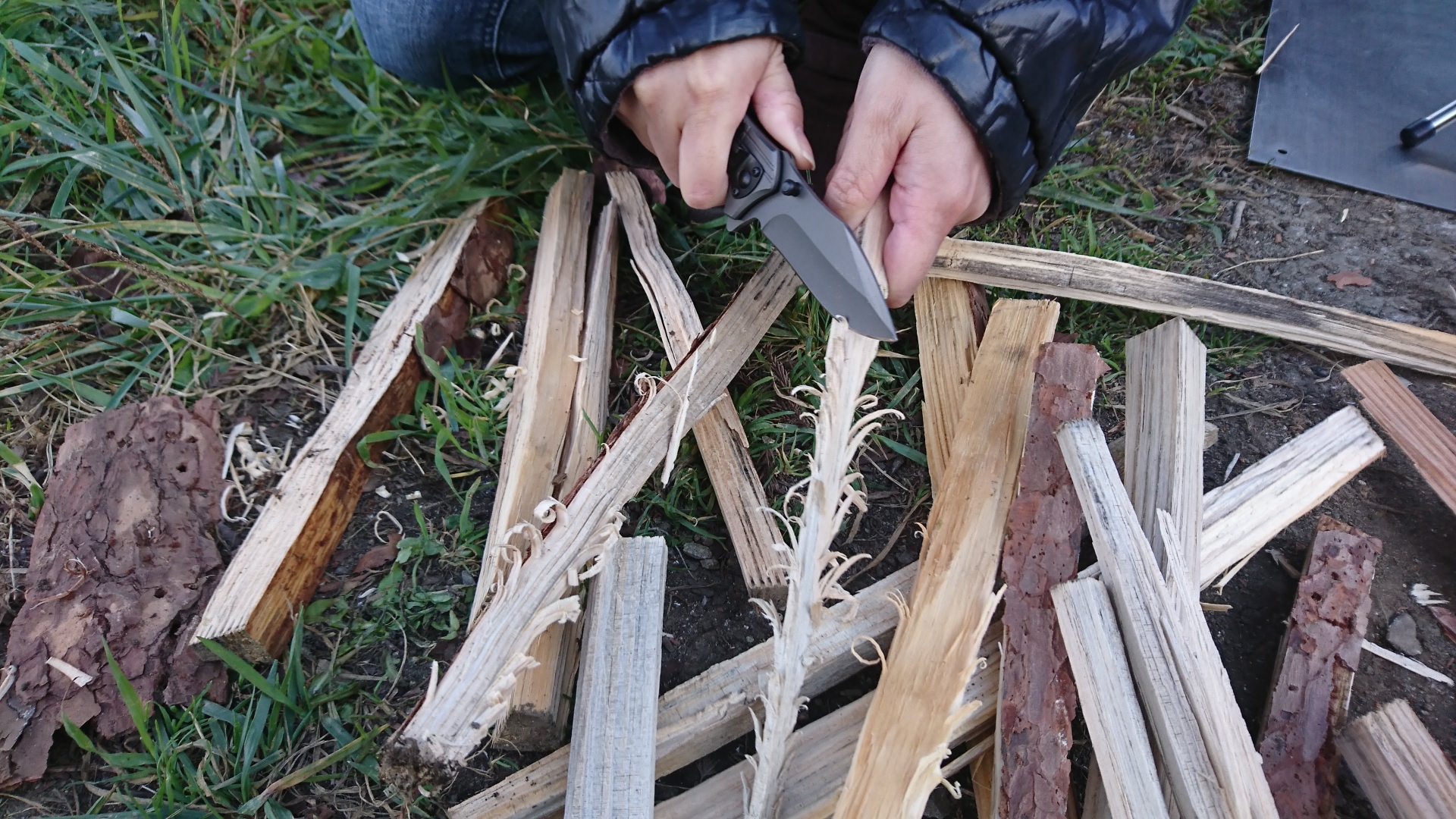 ナイフの刃付け部分「グラインド」には、フラットグラインド・ホローグラインド・コンベックスグラインドなどがあり、それぞれ切れ味と強度のバランスが異なります。コンベックスグラインドは最も強度が高く斧や鉈にも採用される形状で、薪割りなどの重作業に最適です。