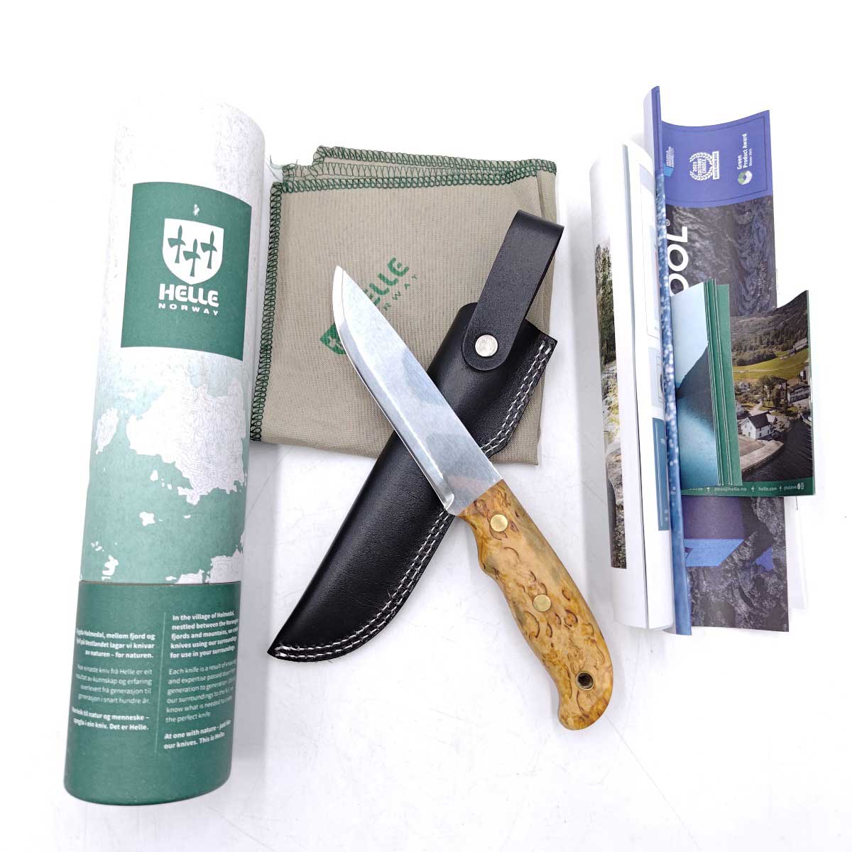 ヘレ(HELLE) は1932年創業、ノルウェーの美しい自然に囲まれた町ホルメダールで生まれたナイフブランドです。ディディガルガル、テマガミ、ユートゥベーラなど個性豊かなラインナップで、45工程を経て職人が1本1本手作業で製造。天然木材のハンドルと皮革シースの伝統的な美しさと、トリプルラミネートスチールの実用性を兼ね備えています。